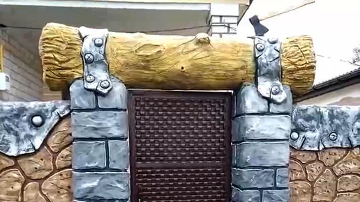 Забор, декоративная штукатурка .фонтан, декоративные скалы. мастер Василий