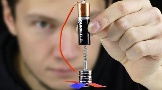 Как сделать простой электродвигатель из батарейки за 1 минуту