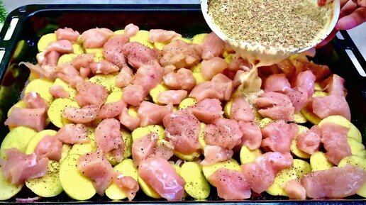 Заливаю курицу и картошку соусом и в духовку. Съедают моментально и просят добавки.