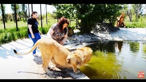 ПОПРОБУЙ ПОВТОРИ! Женщина купает ЛЬВА!