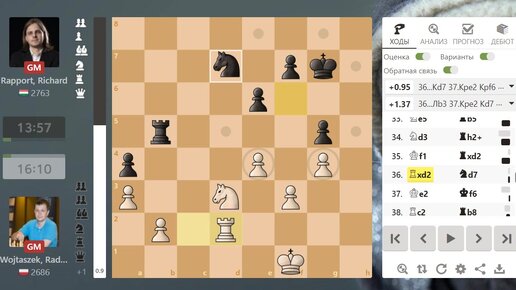 Поляк Войташек ставит своего белого нового ферзя на доску и Рихард Раппорт сдается на Гран-при Фиде 4 февраля '22
