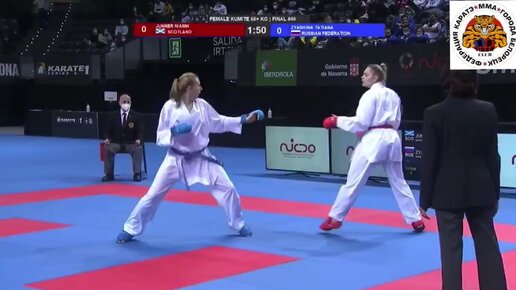 Турнир по каратэ в Испании г. Памплона. Финал премьер лиги серии А: Татьяна Зябкина из России против каратистки из Шотландии.