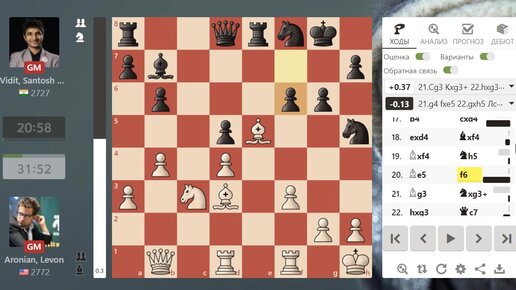 Левон Аронян играет бессердечно на гран-при Фиде 2022 белыми против Гуджрати - победа атакой слона (04.02.2022)