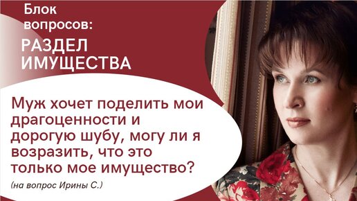 🔴 На вопрос Ирины: Муж хочет поделить мои драгоценности и шубу. Могу ли я возразить, что это только мое имущество?