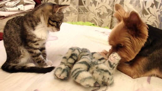 Как подружить котенка с собакой. Игры котенка и собаки. Котенок Ватсон в гостях у собаки.