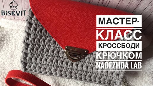 Простая сумка из трикотажной пряжи с кожаный клапаном. Вяжем крючком