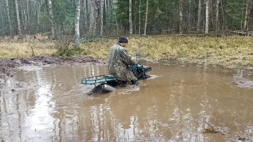 Самодельный полноприводный мотоцикл в болоте
