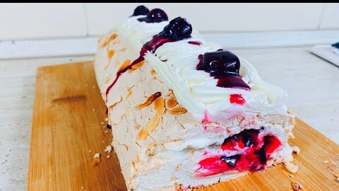Нежный меренговый рулет с вишней рецепт ,это просто не реальная вкусняшка😋🤤