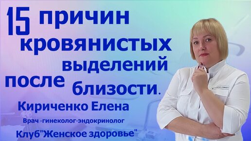 15 причин кровянистых выделений после близости. Елена Александровна Кириченко. Врач гинеколог-эндокринолог.