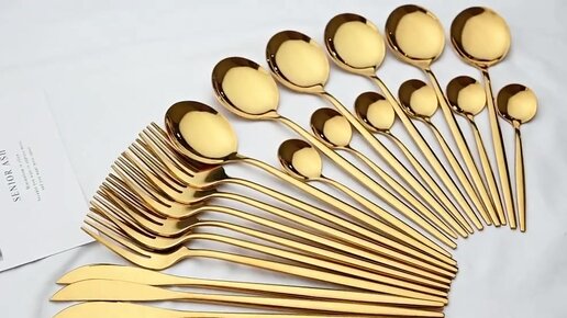 Набор золотых столовых приборов из нержавеющей стали, 24 шт