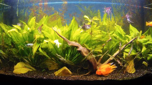 Мой аквариум дома. 200 литров, живые растения, разнорыбица