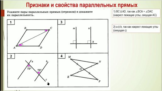 Аксиомы прямых. Углы. Признаки и свойства параллельных прямых