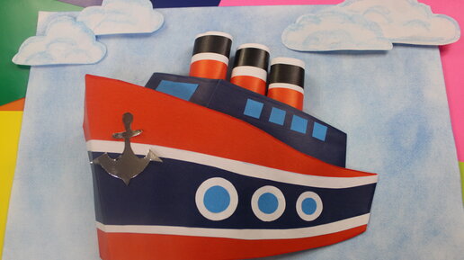 Объемная аппликация ПАРОХОД из цветной бумаги. Поделки для детей к 23 февраля.