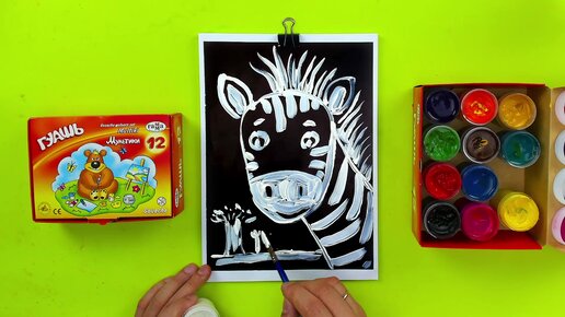 Вот это да! - Рисуем зебру белым по чёрному - рисуем красками
