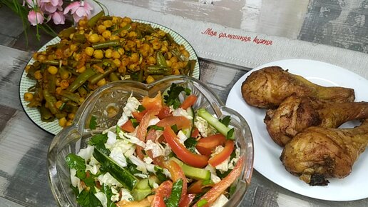 Гарнир, мясо и салат - универсальное меню для семейного обеда или ужина