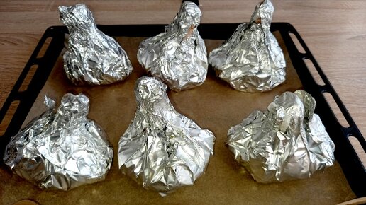 Беру куриные голени, заворачиваю их в фольгу: получается вкусный и сытный ужин
