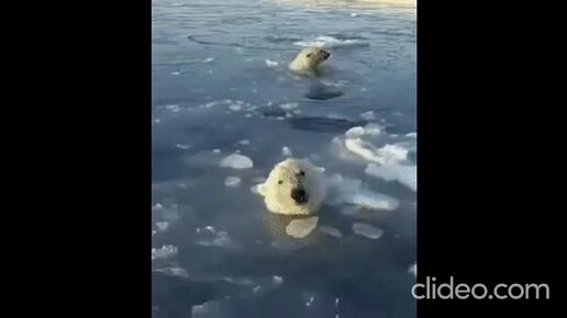 Медведица ломает лёд, чтобы медвежонок мог вынырнуть и подышать.