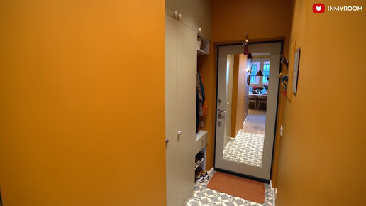Яркая прихожая на 3 кв.м, где архитекторы предусмотрели необычные системы хранения и убрали вешалки