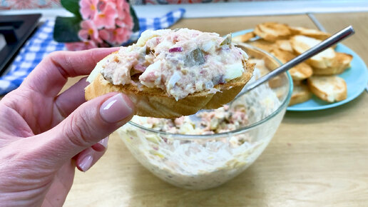 Быстрая закуска. Брускетта с соленым огурцом и тунцом. Показываю простой рецепт