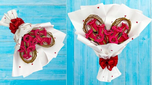 Букет сердце из конфет на День святого Валентина, на Свадьбу, годовщину своими руками