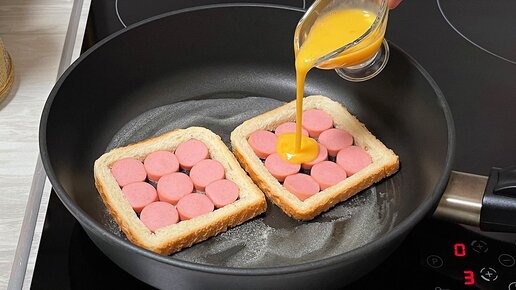 Романтический завтрак для влюбленных. Простые и быстрые, горячие бутерброды на сковороде.
