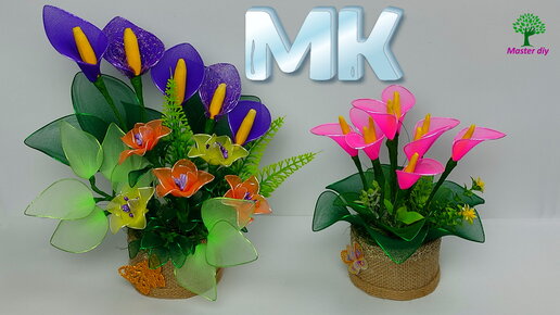 Композиция из капрона Цветы Каллы из капрона своими руками Отличный подарок\Master diy