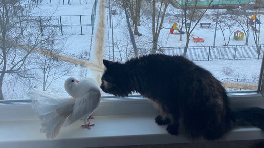 Знакомство кота с голубем. Новый член семьи