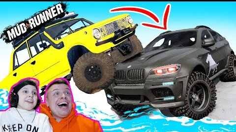 BMW Перевернули ЖИГУЛИ на Лебёдке ТЯНУЛИ!!! Крутой ЧЕЛЛЕНДЖ в Mudrunner