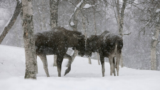 🌲Фотограф из Мурманска снял лосиху и ее детеныша с высоты птичьего полета.