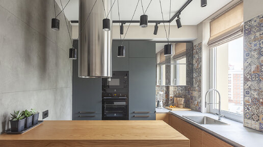 ✅ Классный дизайнерский ЛОФТ. На 49 м2 разместили 2 гардеробные, спальню, гостиную и красивую КУХНЮ!