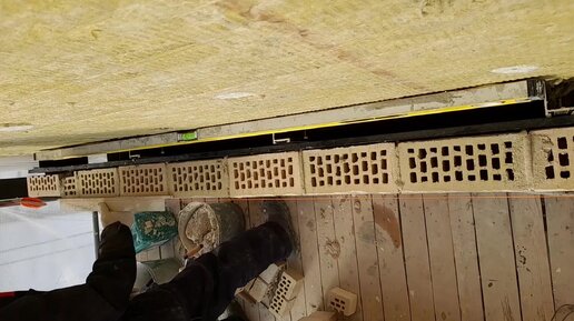 Доделал кладку до отметки 2м 21см. Монтируем горизонтальный уголок и закладываю кладкой