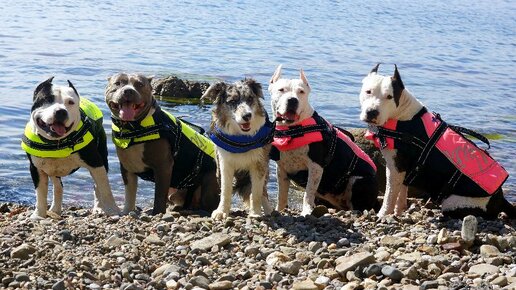 Спасательные жилеты для всех 🐶 трое в лодке и с ними собака