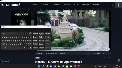 Наглядная демонстрация использование клавиш стрелок на клавиатуре в приложении Kinoplay