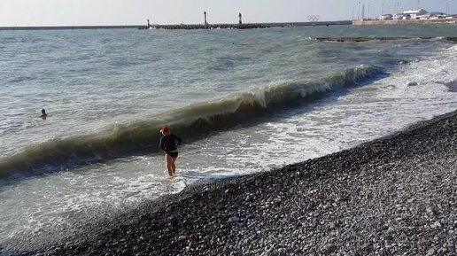 Море штормит. Народ гуляет, фотографируется. Зима в Сочи