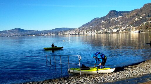 Бабушка и внук - байдарочники. Зимний заплыв на Женевском озере