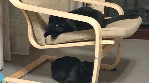 Наш серый Тёма спокойно наблюдает как развлекаются и хулиганят чёрные коты.