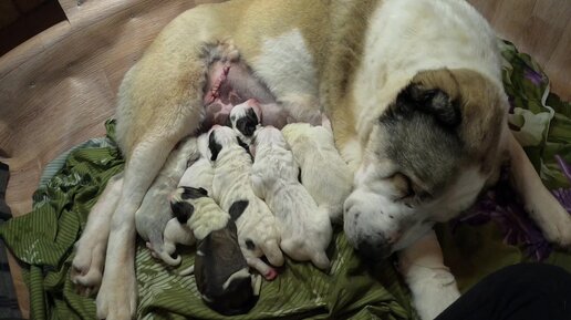 Роды алабая, экстренное кесарево