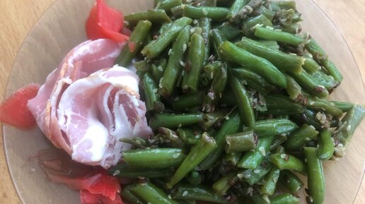 Ужин за 10 минут. Зелёная фасоль с беконом.
