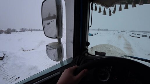 В поле на трале. Перевозка газовой трубы.