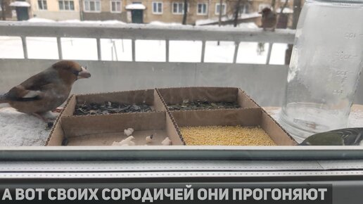 Импровизированная кормушка на балконе ☼ Сегодня в гостях у кормушки уверенные синицы, наглый дубовик и трусишки воробьи.
