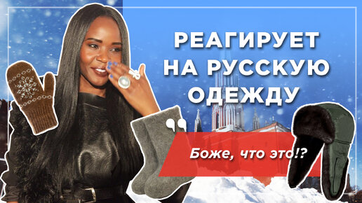 Чернокожая иностранка реагирует на русскую одежду