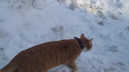Рыжик и на прогулке, меня выгуливает