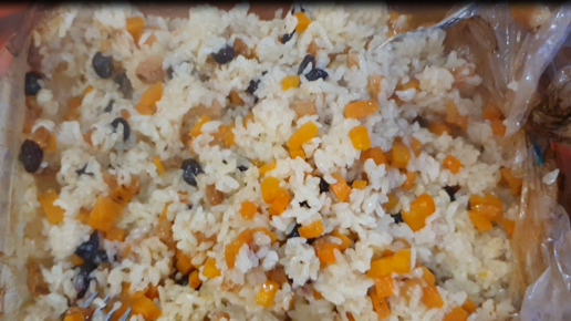 Готовлю плов по новому! Плов в пакете с курицей изюмом и персиками.