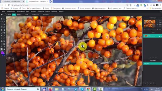 Как увеличить и уменьшить изображение в программе Pixlr 2021 с помощью лупы, инструмент рука