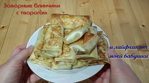 Заварные эластичные блинчики с творогом и бабушкин лайфхак!