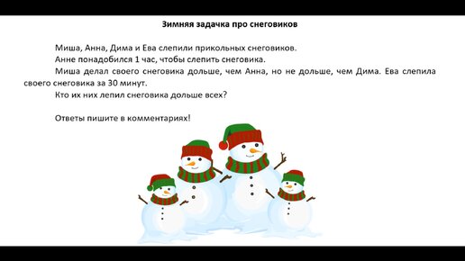 Зимняя задачка на логику: Кто дольше всех лепил снеговика