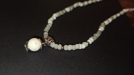 Делаем бусики из бисера с подвеской камня из бирюзы