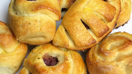 Сдобные плюшки с начинкой и присыпкой. Скручиваю и заворачиваю в виде восьмерки и других закорючек