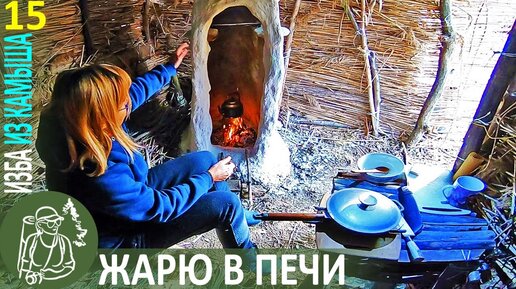 Завершаю печь-камин и крышу 👣 Бушкрафт в Избе из камыша | Серия 15