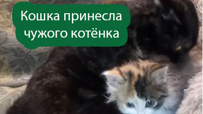 Наша кошка принесла чужого котёнка домой и начала растить его